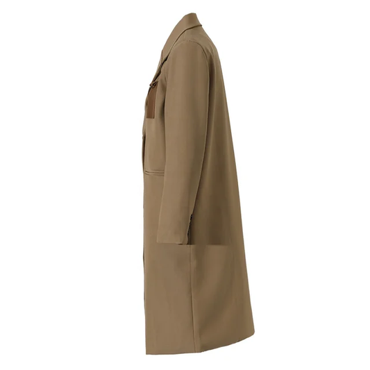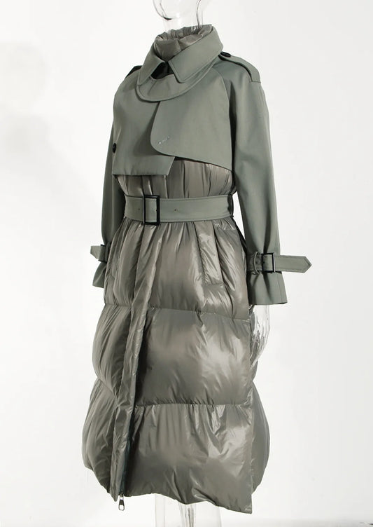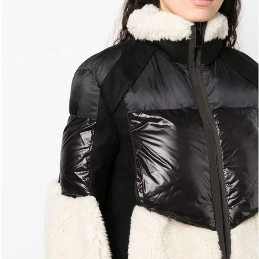 Abrigo gris con detalle en cuello de pelo sintético, detalles en perlas colección ocs