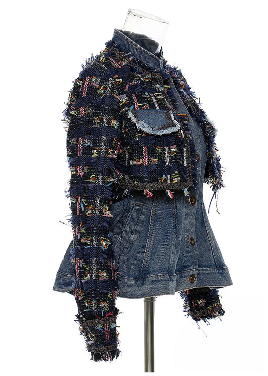 Conjunto de 2 piezas de Chaqueta corta con decoración de cadena de diamantes de moda y Falda vaquera envolvente para mujer