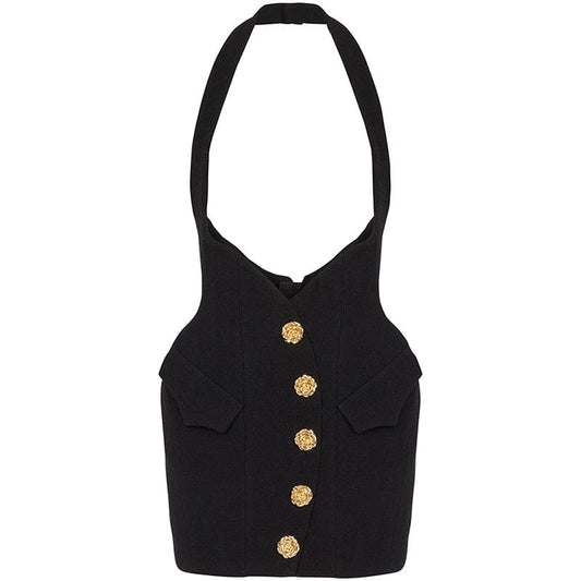 Conjunto falda + blazer color negro y detalle botones en dorado