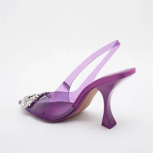 Precioso stileto color purpura transparente con detalle cristales