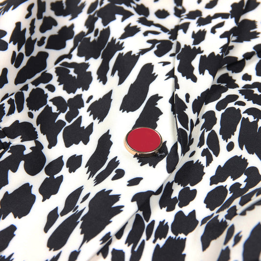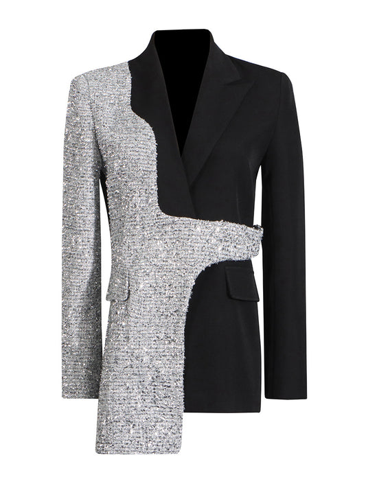 Blazer negra con vuelo lateral y detalles en piedras y perlas