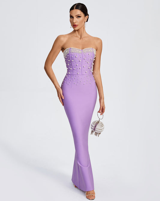Vestido bandage color Lila con perlas blancas corte sirena / ocssir