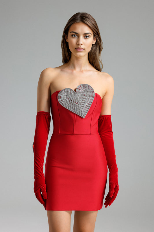 Vestido palabra de honor con encaje rojo precioso corte colección ocsen