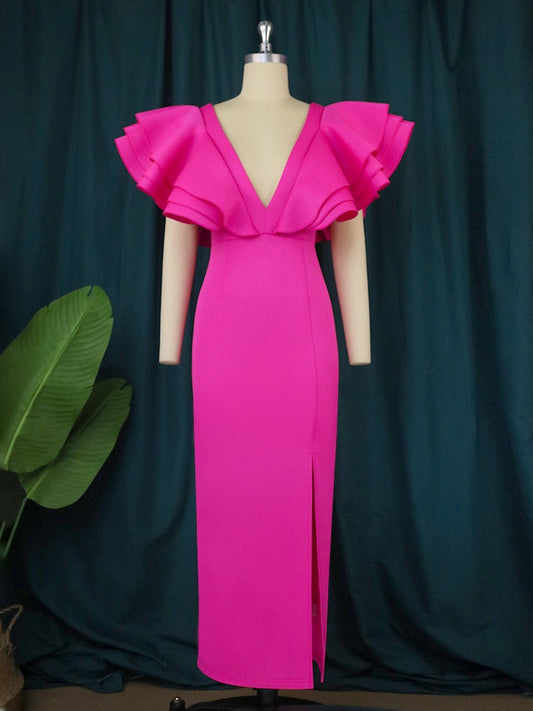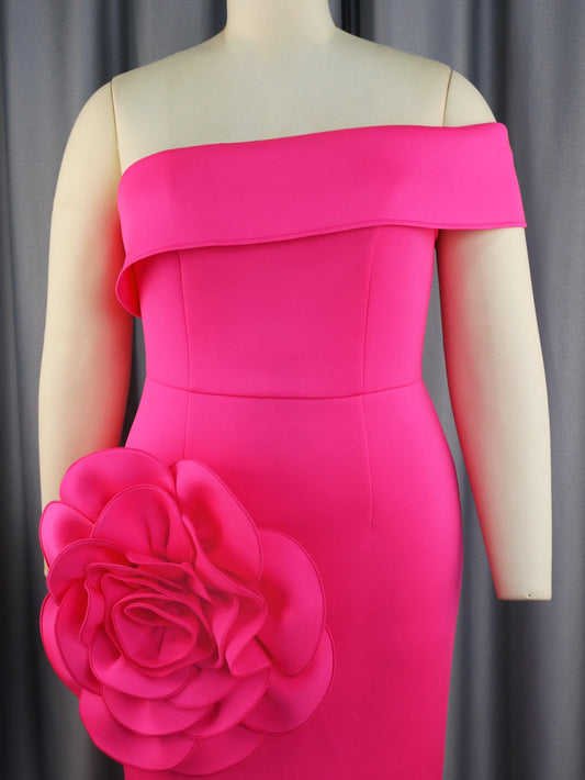 Precioso vestido Rosa con detalle de flor talla hasta 4XL