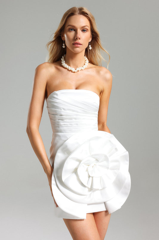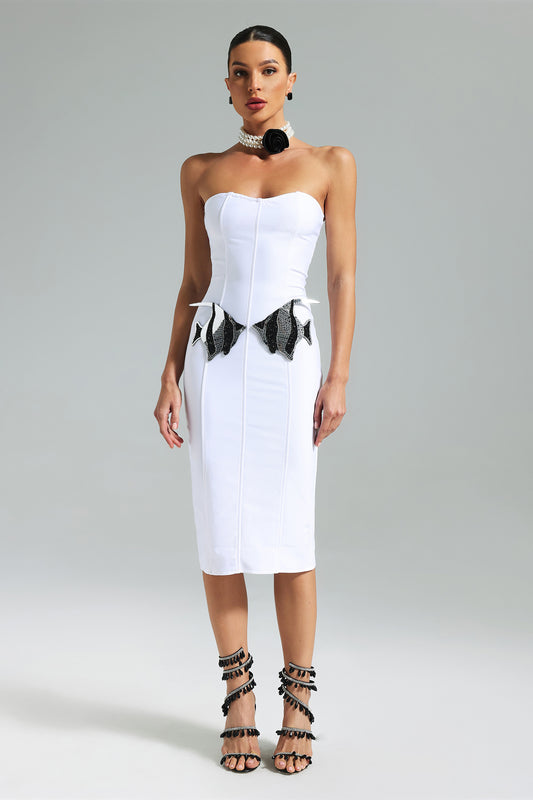 Vestido largo bandage palabra de honor con flores en relieve blancas