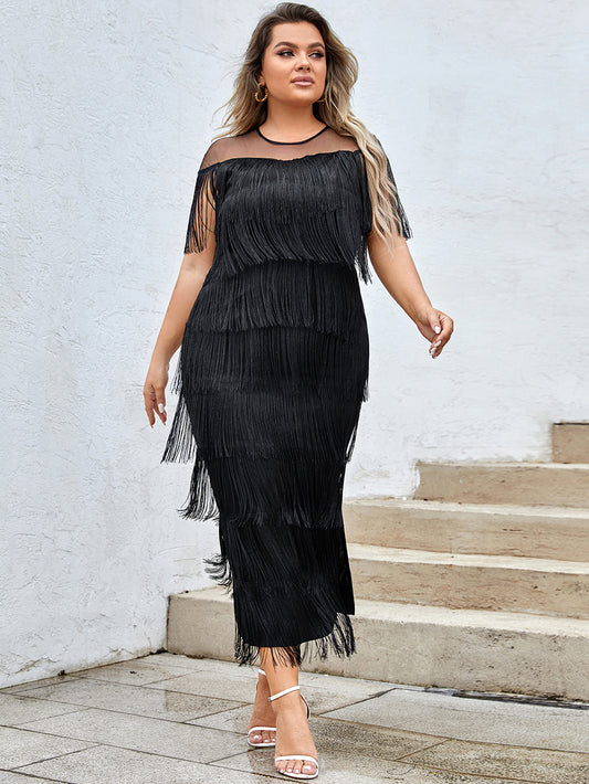 Mono color negro parte superior lentejuelas con plumas negras , escote en V