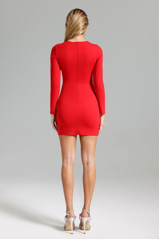 Vestido bandage rojo, con flores en relieve en escote ,ajuste en corset