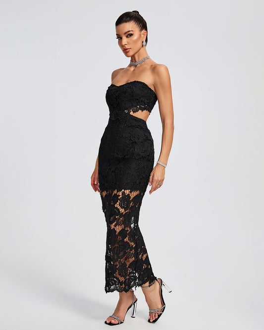 Vestido elegante corte clásico con encaje y detalle en cintura corazón / ann