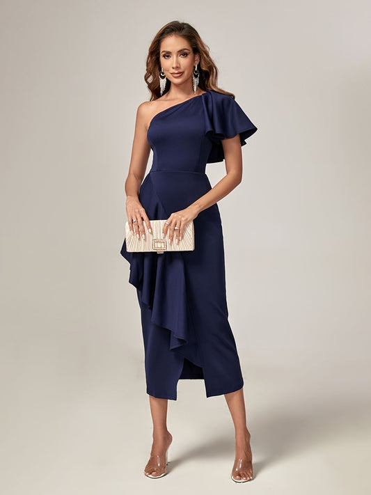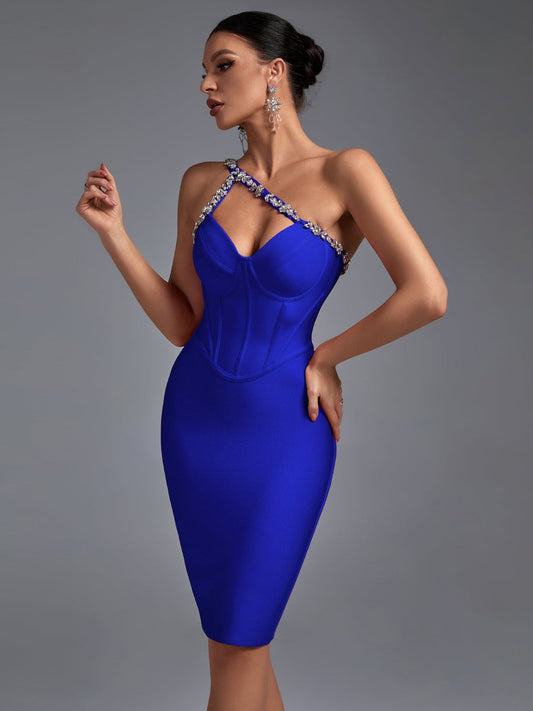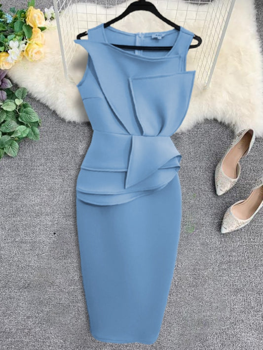 Vestido ajustado con detalle en mangas color azul