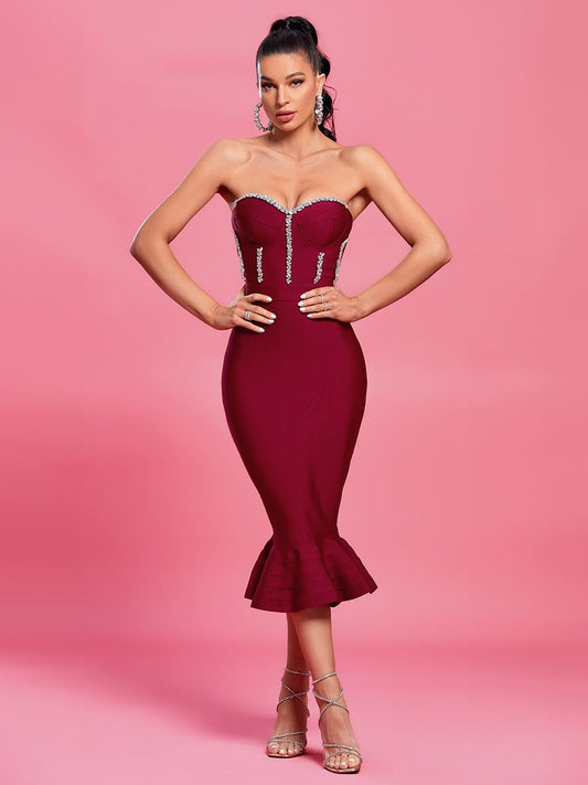 Vestido bandage ajustado palabra de honor burdeos