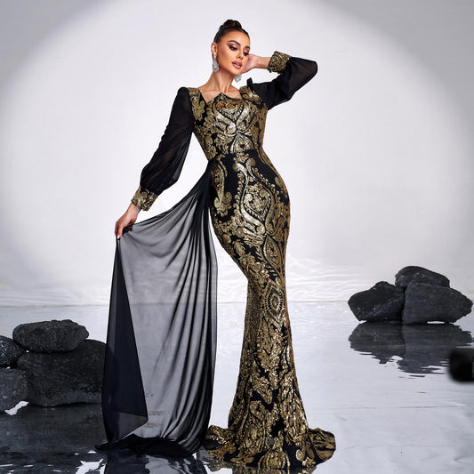 Vestido largo lentejuela con corset y manga larga / colección ocsbri