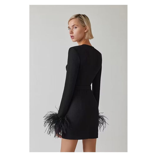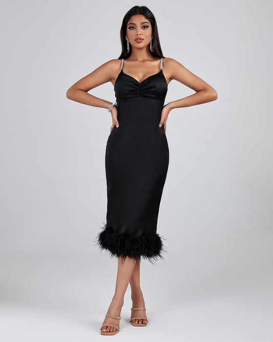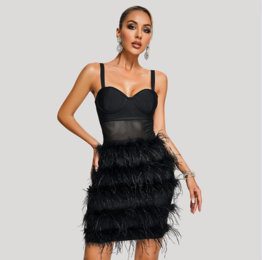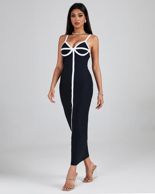 Vestido negro bandage palabra de honor con escote lentejuelas