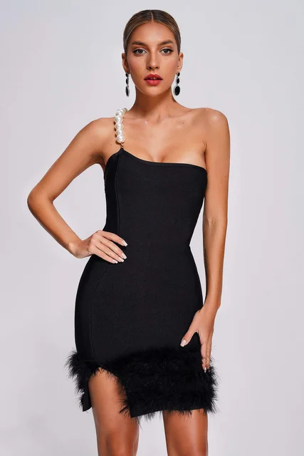 Vestido negro detalle en plumas disponible blanco , rosa y negro