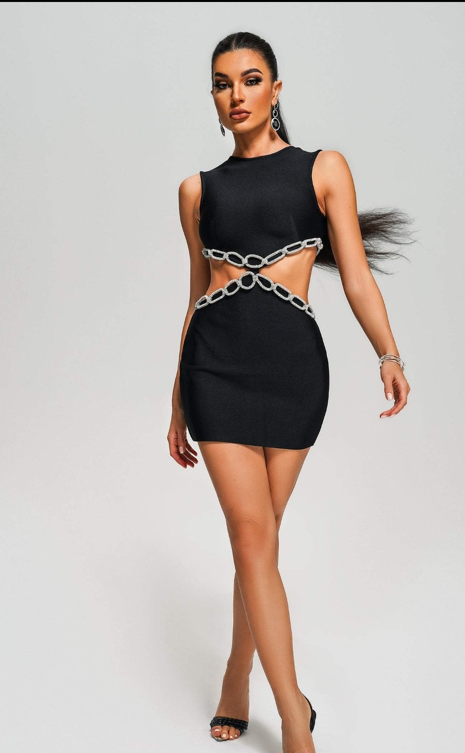 Vestido negro con cadenas plateadas